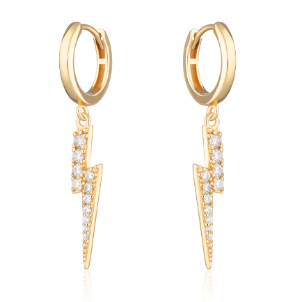 Scream Pretty | Lightning Charm Hoops | Available in 18k Gold or Rhodium Plated Silver