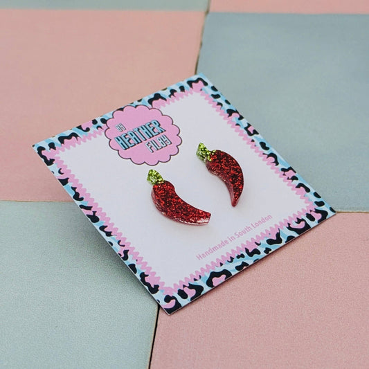 By Heather Filby | Glitter Stud Earrings | Chilli Pepper