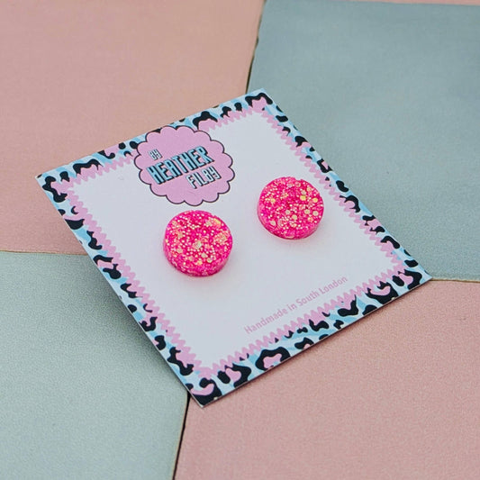By Heather Filby | Glitter Stud Earrings | Circle (Pink)