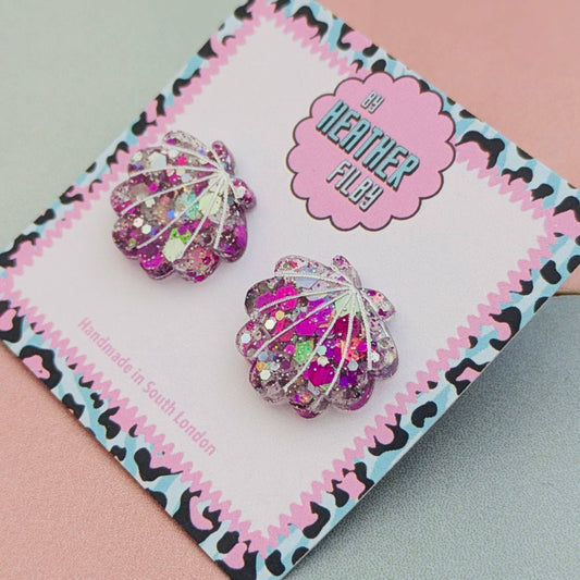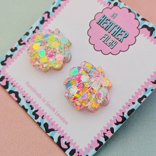 By Heather Filby | Glitter Stud Earrings | Shell (Pink)