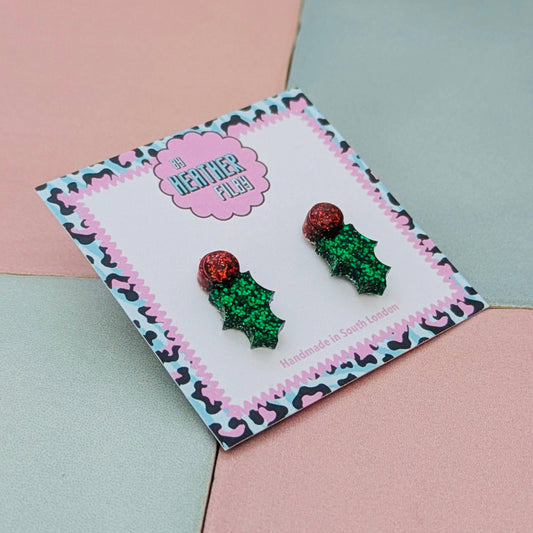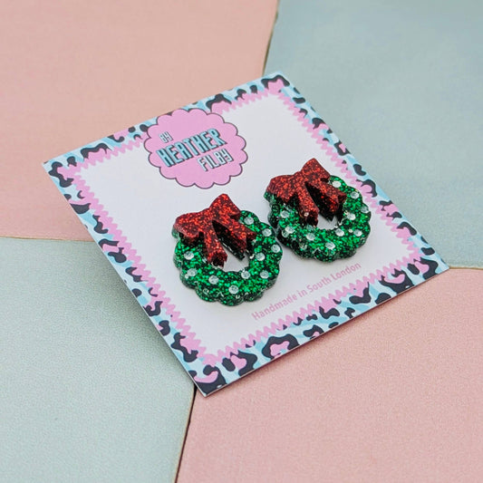By Heather Filby | Glitter Stud Earrings | Christmas Wreath