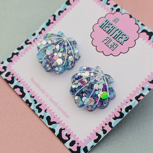 By Heather Filby | Glitter Stud Earrings | Shell (Blue)