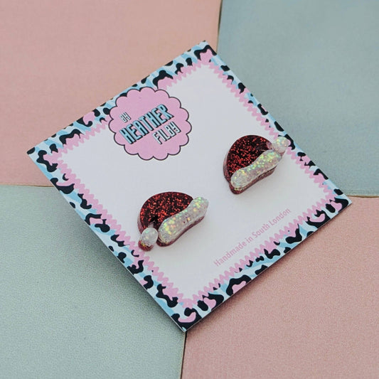 By Heather Filby | Glitter Stud Earrings | Santa Hat