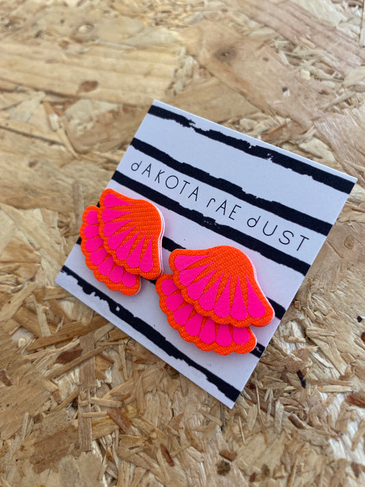Dakota Rae Dust | Tiered Frill Stud Earrings | Orange & Pink