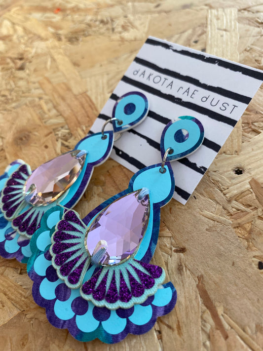 Dakota Rae Dust | Statement Jewel Earrings | Blue, Lilac & Purple