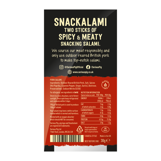 That moment sparked Serious Pig - and their first snack, the Snackalami, made from outdoor-reared British pork and packed with real flavour. Since then, they have expanded their range and built a community of brilliant producers who help them make seriously tasty snacks.