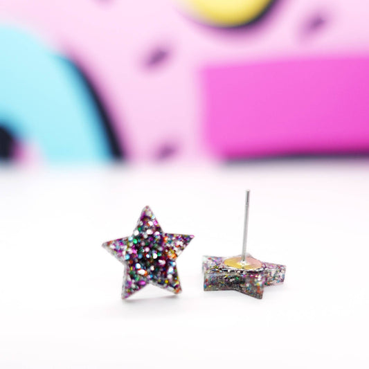 Silly Loaf | Hoop Earrings | Glitter Stars Black