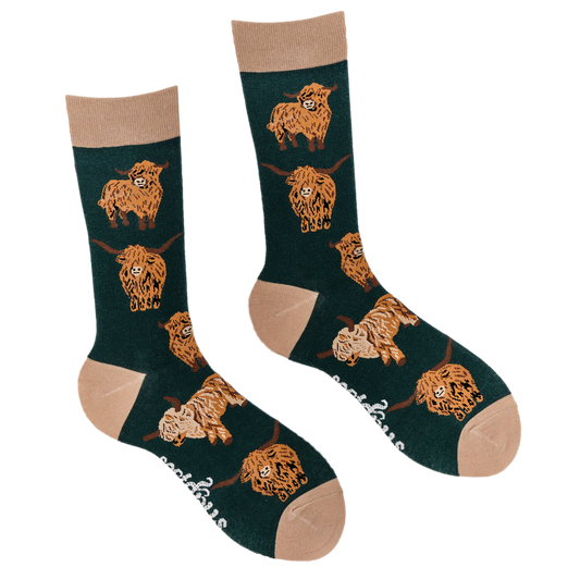 Socktopus | Highland Cow Dark Green | L UK 9-12