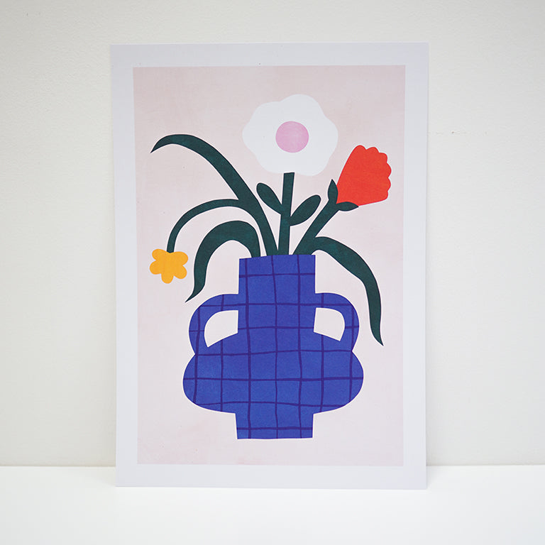 A4 Unframed Print | Lemon and Sugar Prints | Blue Crosshatch Vase