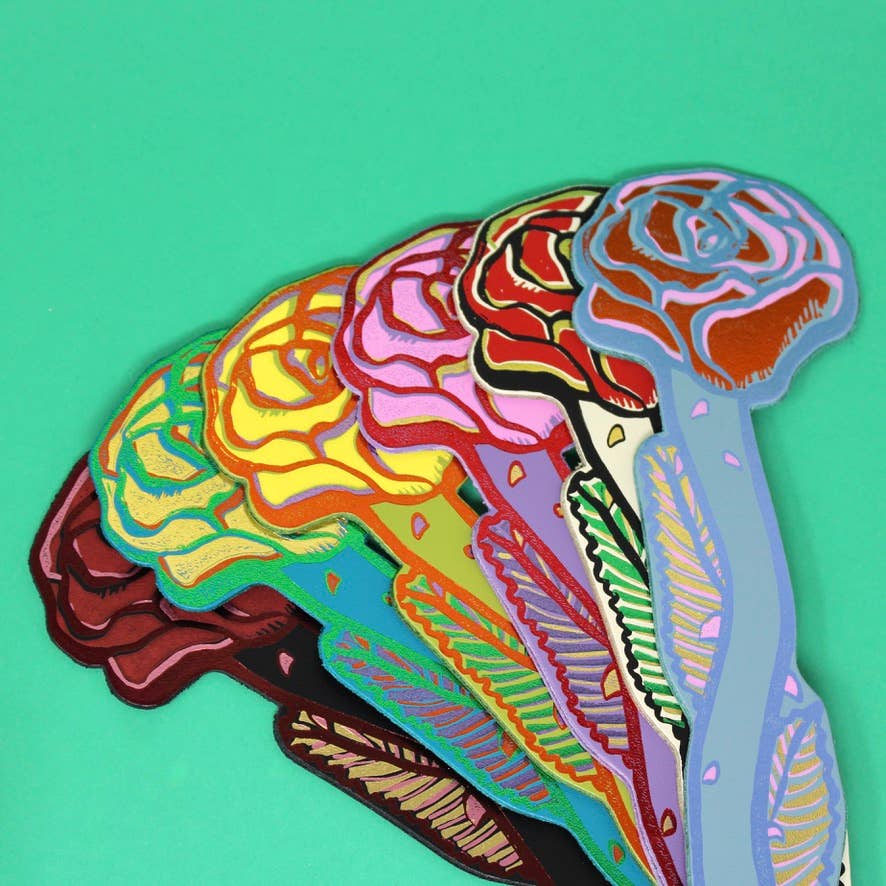 100% Genuine Leather Bookmark | Designed & Made in the United Kingdom | Hand foiled and embossed Our Rose bookmark has blossomed!
