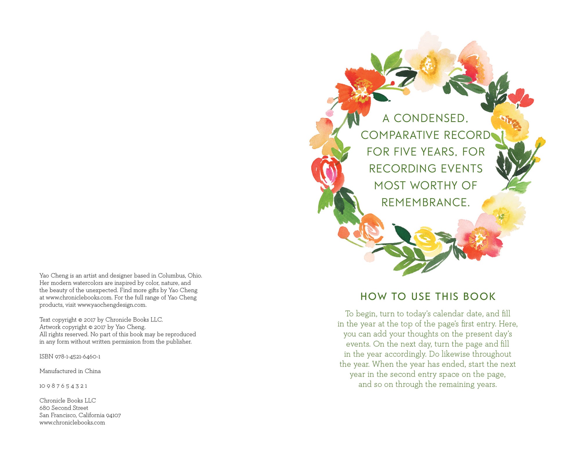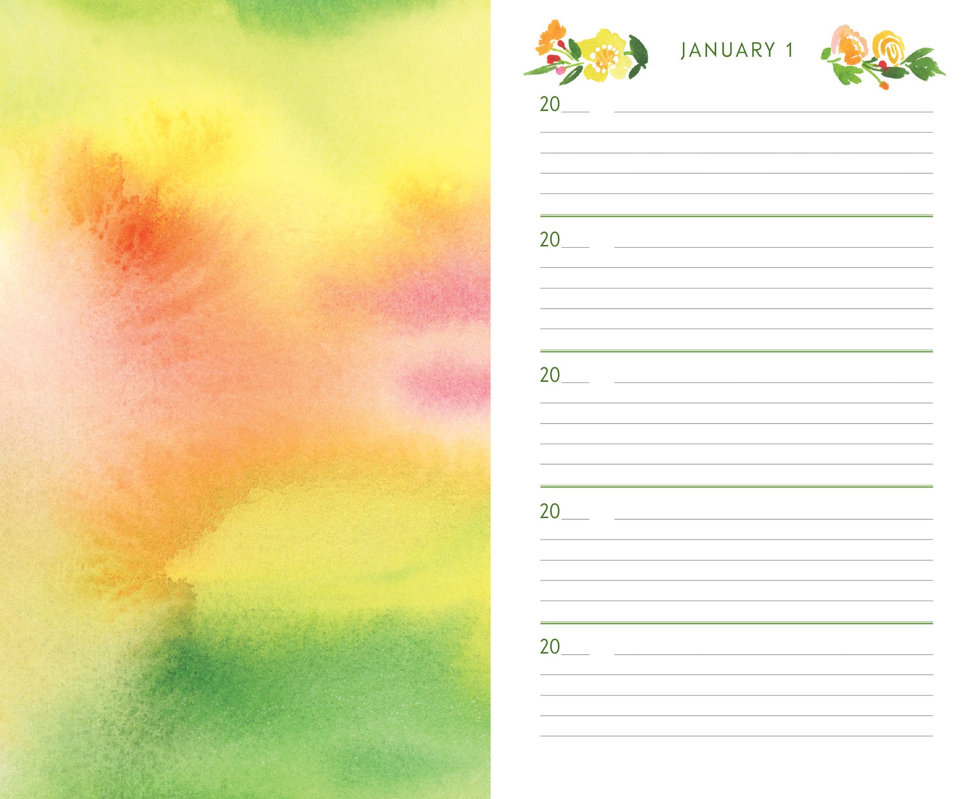 This sweet new version of the classic bestselling 'One Line a Day' memory book features vibrant floral watercolour artwork on its cover and within. With foil-stamped accents, gilded page edges, and a silky ribbon marker, this strikingly beautiful five-year diary brings unexpected joy and reflection to each day, and makes an exceptional gift.
