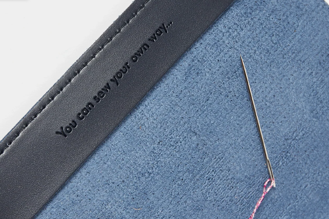 Includes vegan leather cover, 1 'Teal" colour thread & needle, in card gift packaging.