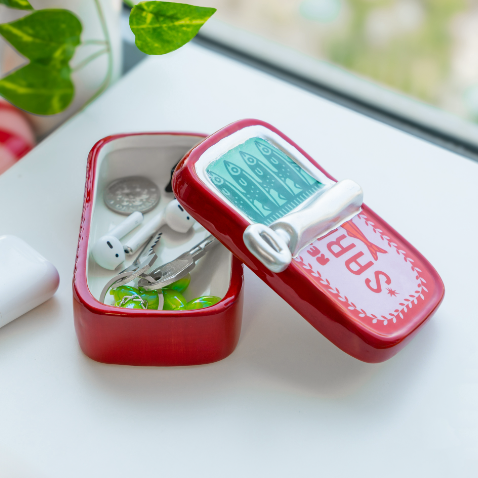 Jewellery box shaped like a sardine can, designed to surprise and stand out. Combines jewellery storage functionality with a striking design that doubles as décor.