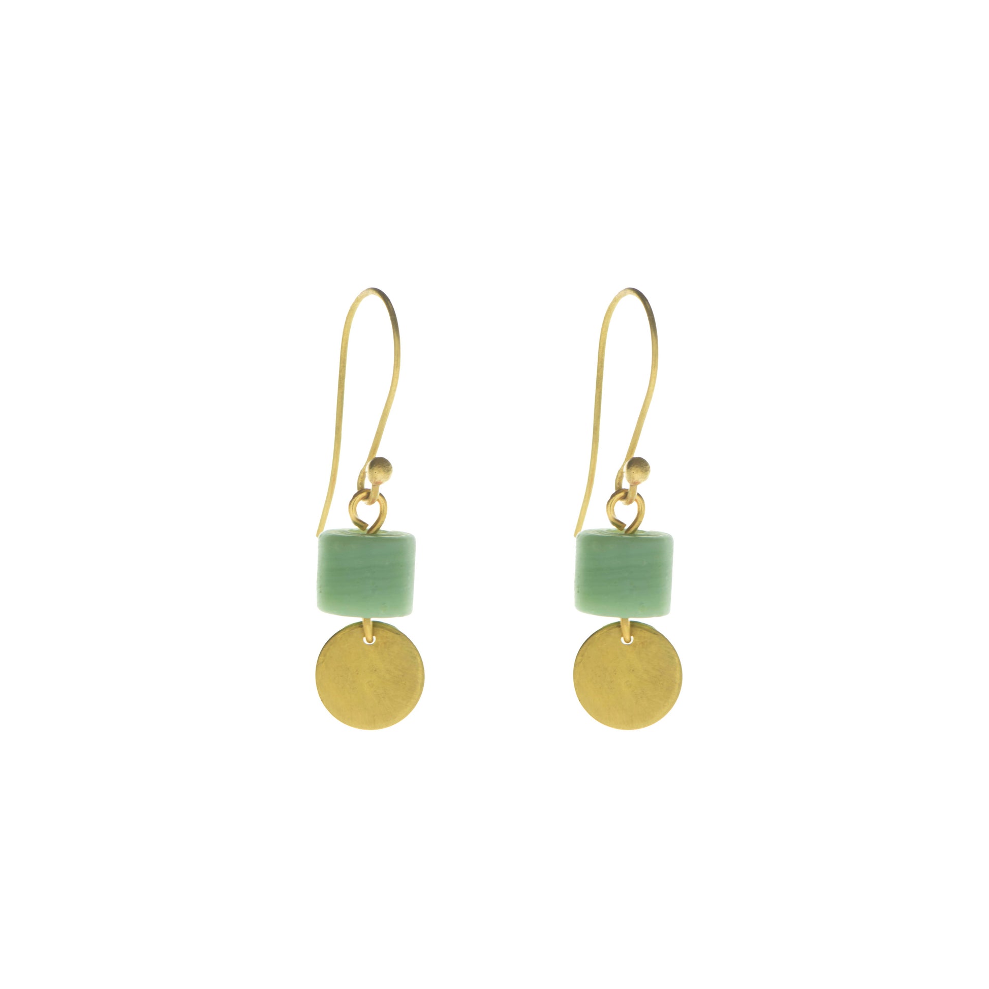 MATERIALS Recycled glass beads with hypoallergenic brass earring hooks.