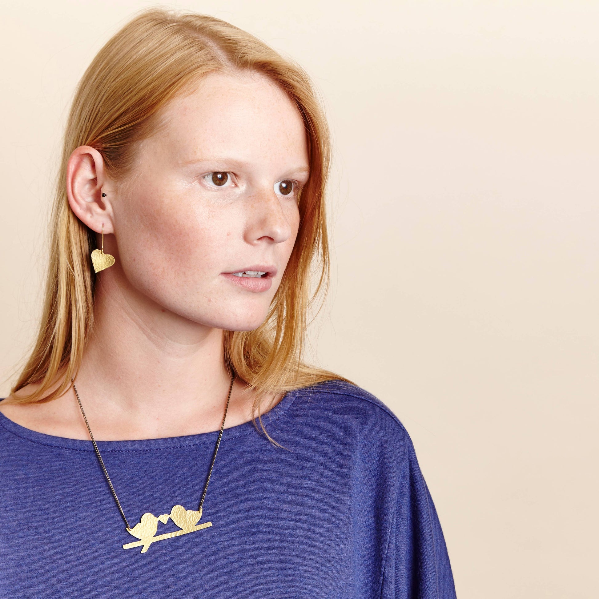 These earrings are hand cut from brass sheet and planished using a specialist hammer to give it texture. This ethical jewellery is handmade by the Flowering Desert Project which provides training and fairly paid work for women from rural communities in Tamil Nadu, India.
