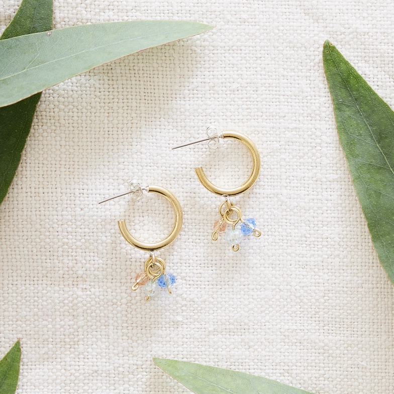 MATERIALS Made from hand-cut brass. Hoops are brass. Earring posts and butterflies are sterling silver. Glass beads.