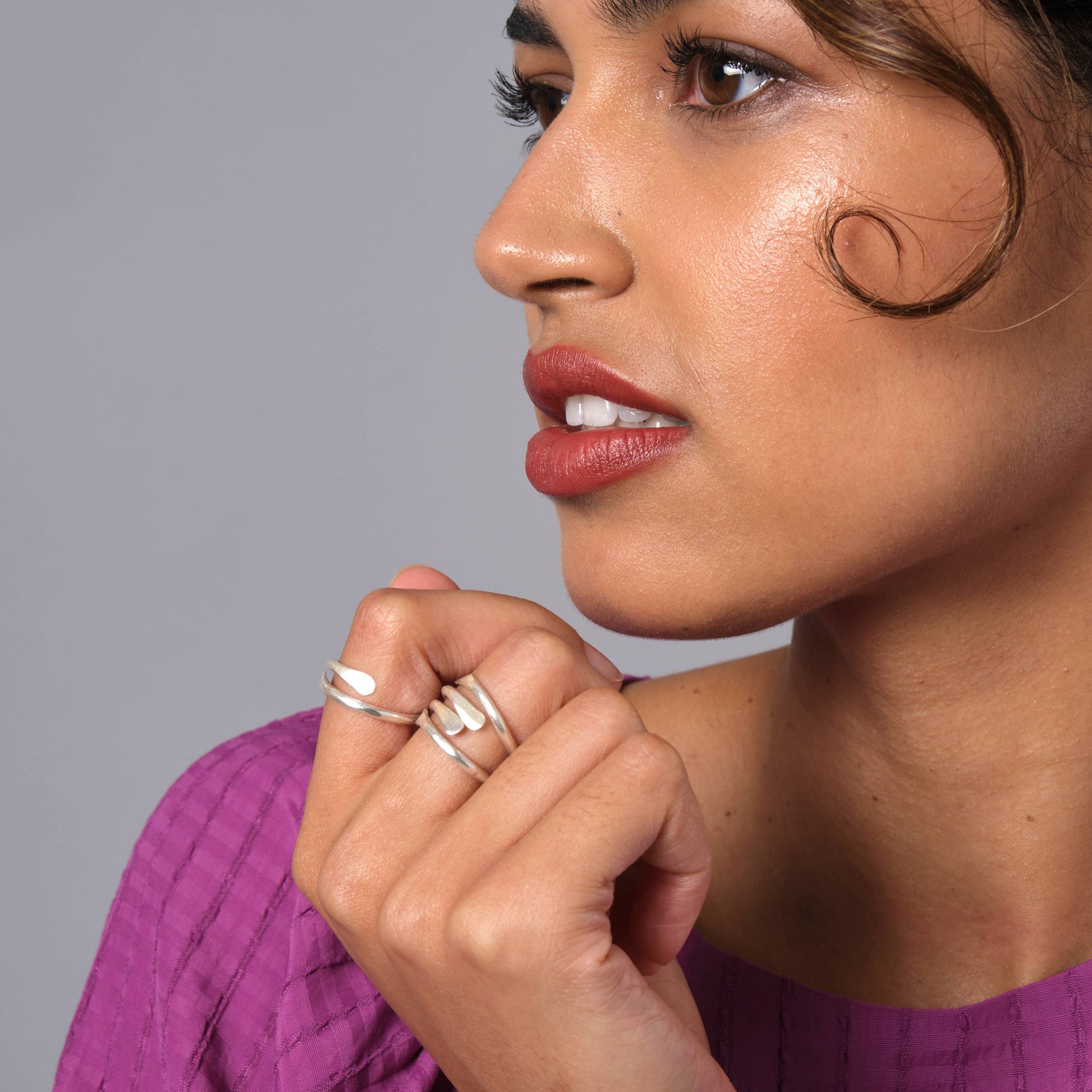 Strips of brass rod are skilfully hammered to create the subltle light-catching texture and round form of each piece. The collection is finished with a layer of plating in either sterling silver or 22ct gold. Handmade by the women at the Flowering Desert Project in India.