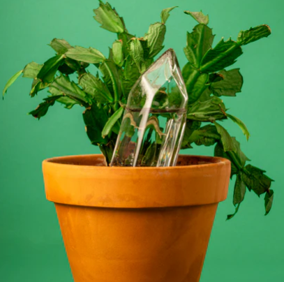 These clever hand blown glass crystals are the perfect way to consistently water your plants. Simply fill with water and place in your flower pot with the cork stopper facing down. It will drip water into your plants soil over the course of 3 to 4 days. Set of two.