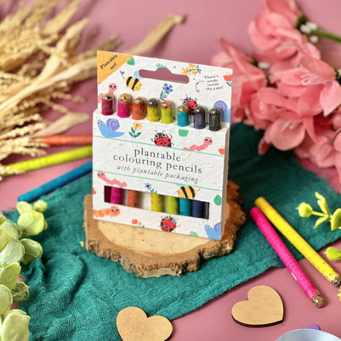 A delightful way to encourage creativity while caring for the planet. Colour, plant, and watch it grow!