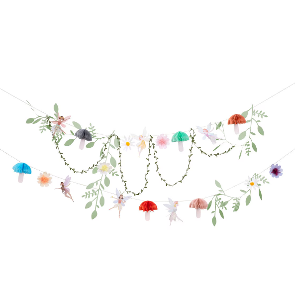 This beautiful garland will make a fairy or princess party look extra special or will brighten up any bedroom. It features fairies, flowers, leaves and funghi, with lots of sensational embellishments.