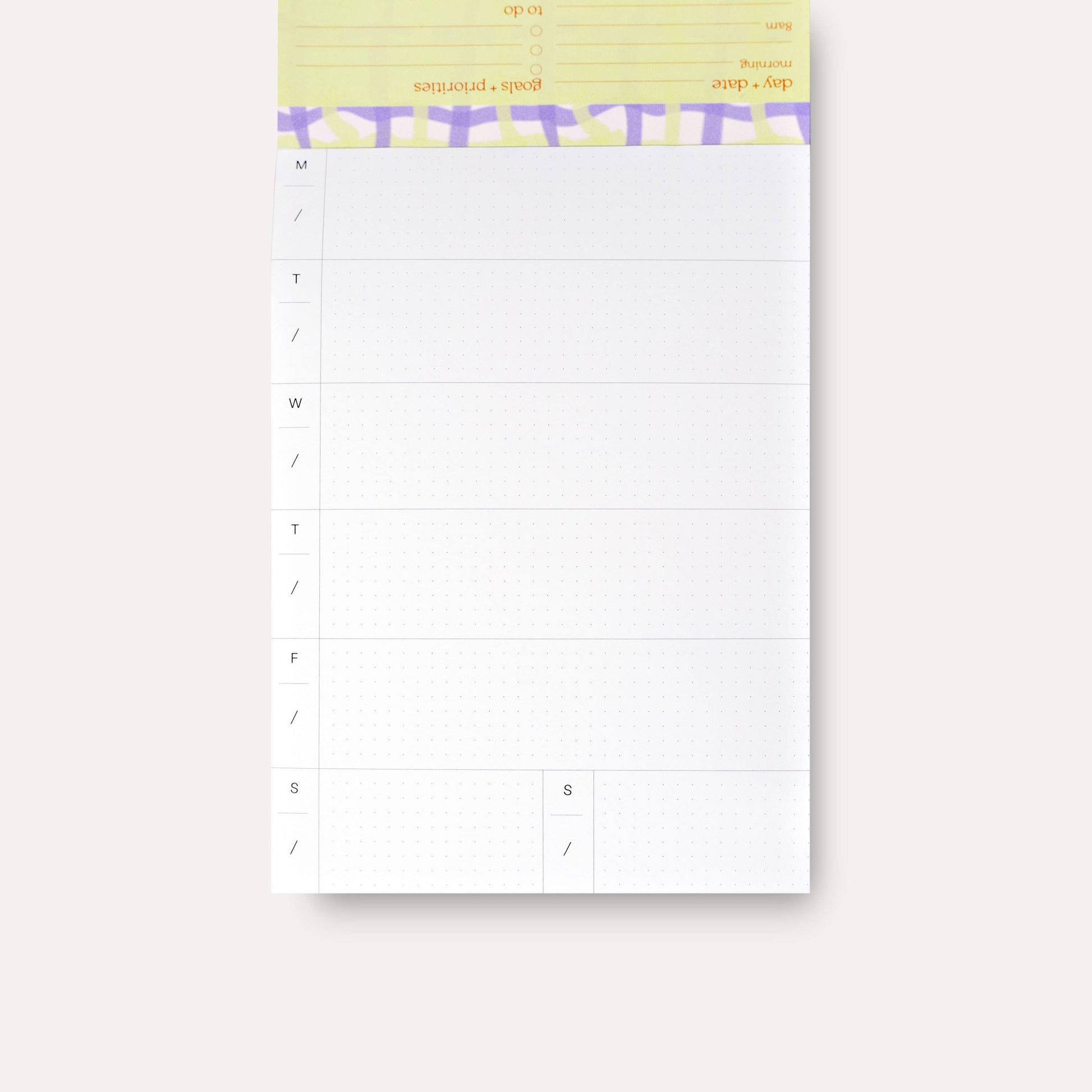 Product details: • A5 size (14.8 × 21 cm) • Approx. 50 pages, 115gsm paper • Weekly planner on reverse of each page • Recycled cardboard backing • Vegetable inks, responsibly sourced paper • Ships in biodegradable film with belly band • Made in the UK design-led organisation, recycled paper pad, UK made planner, back to school
